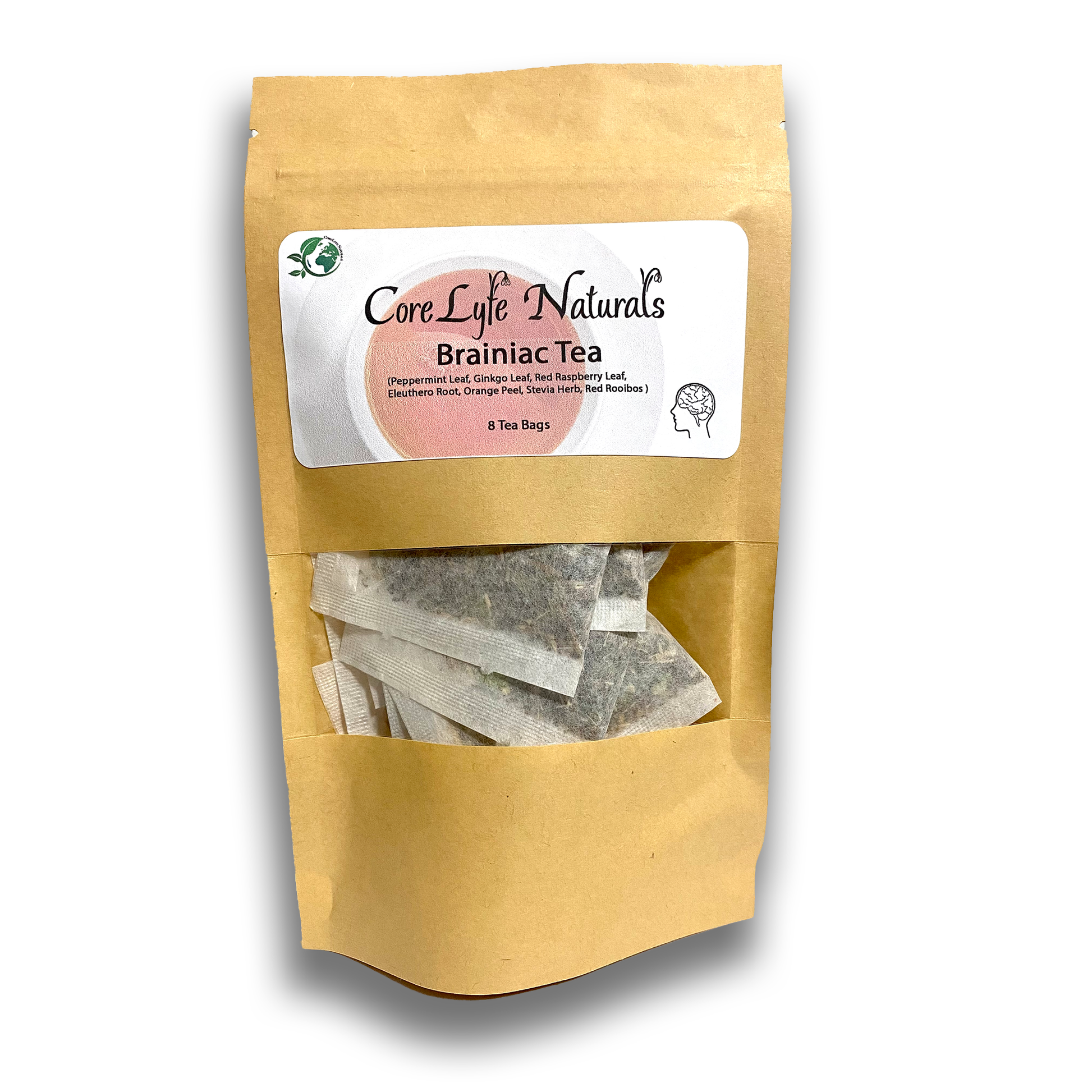 Our Brainiac Tea Blend is caffeine free and supports good brain function and concentration. With perfectly blended flavors of sharp peppermint and orange peel, some of the herbs in this blend are energy-renewing and you'll be sure to improve mental clarity and overall brain operation.