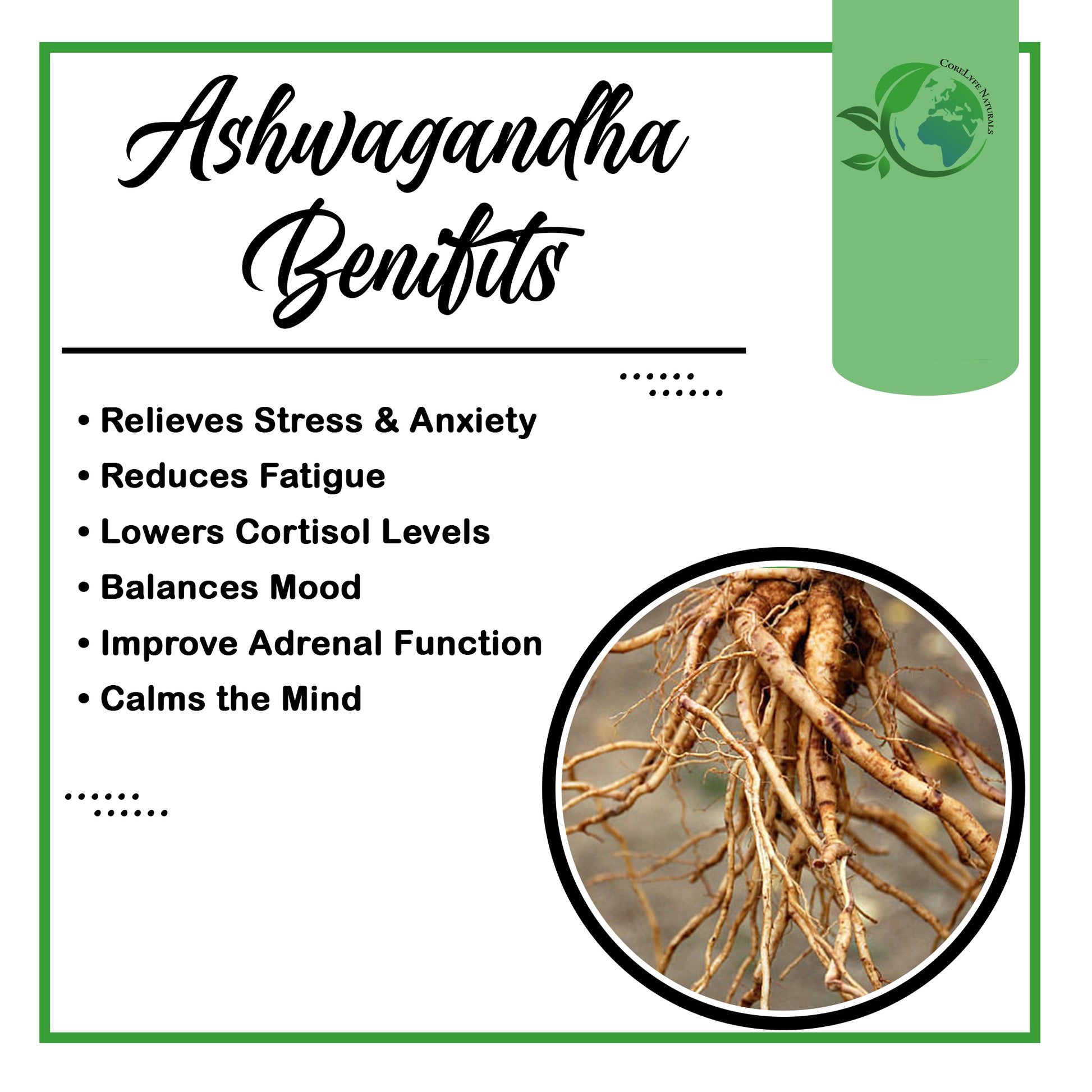 Reduce Stress & Anxiety : Ashwagandha is best known for its adaptogenic properties, reducing cortisol levels, helping the body manage stress.