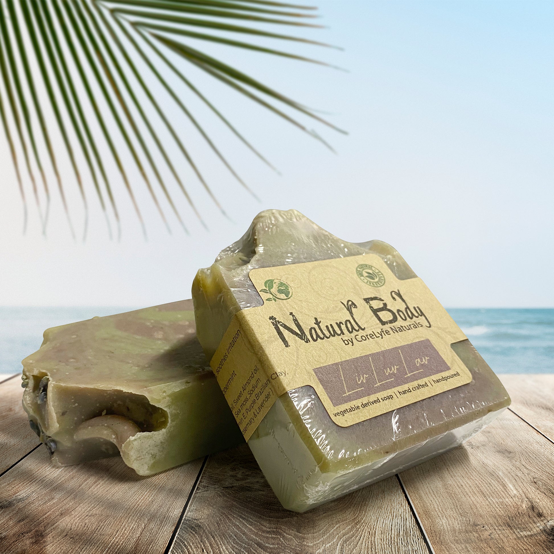 Ingredients: Olive oil, Coconut oil, Palm oil, Sweet Almond oil, Hemp Seed Oil, Avocado oil, Shea Butter, Sea moss ,Sodium Hydroxide, Sea moss Infused Water, Vitamin E, Purple Brazilian Clay, Spirulina Powder, Essential Oil Blend ( Rosemary & Lavender )
